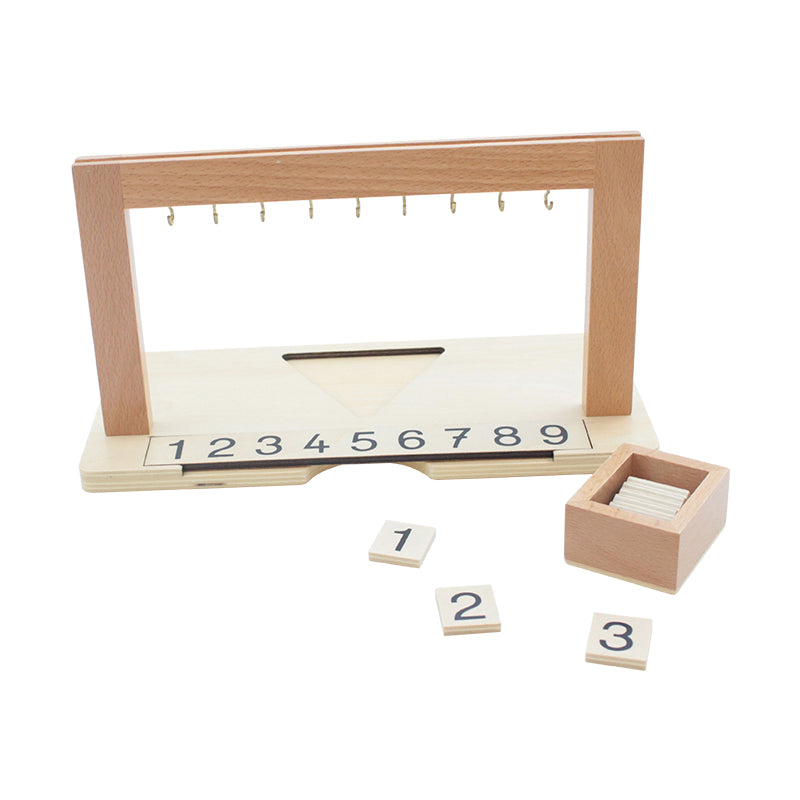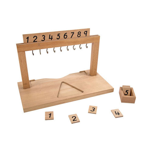 Wooden hanger for color bead stairs with small tiles 1 to 9.